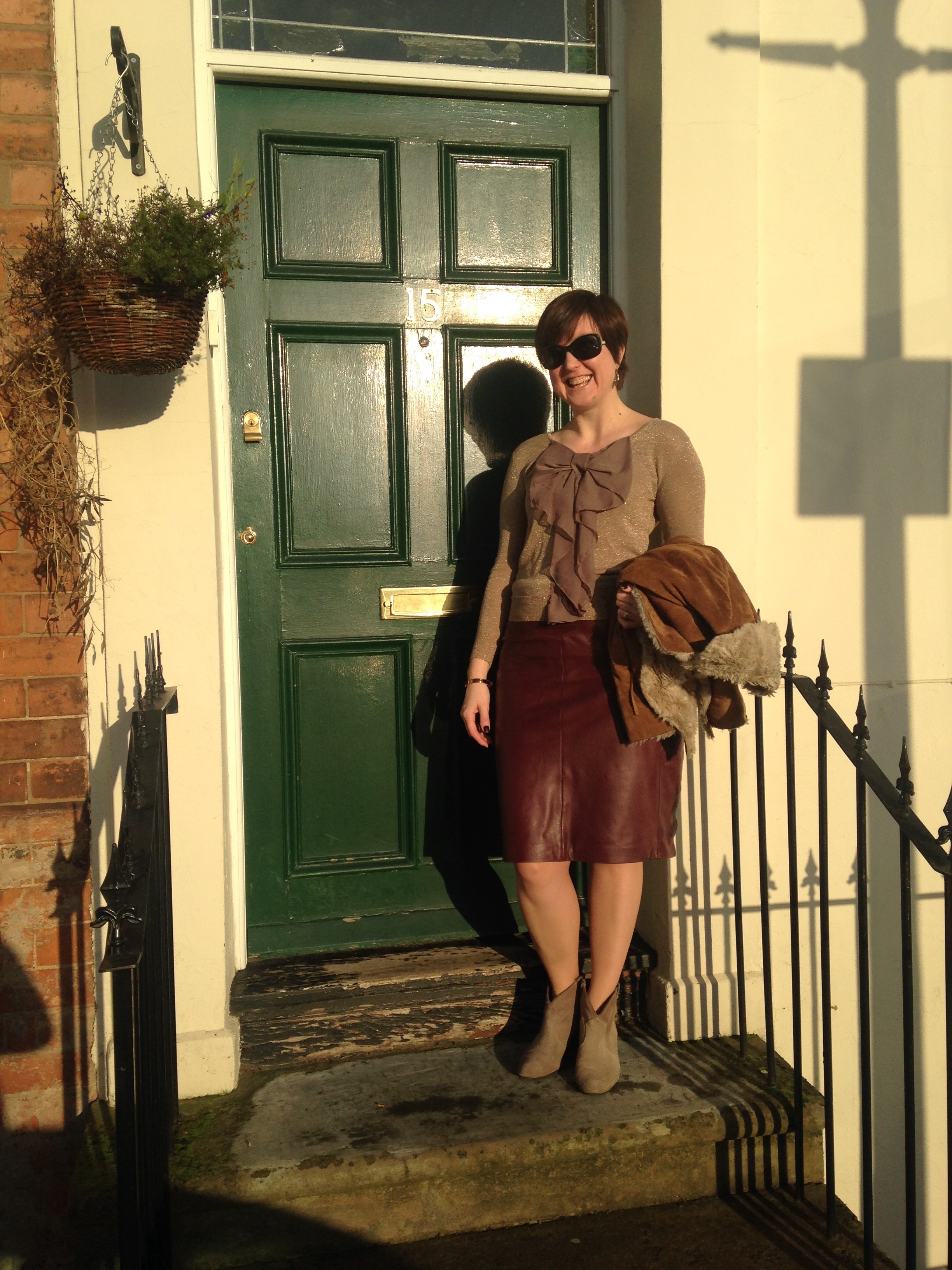 skirt boots no jacket laughing