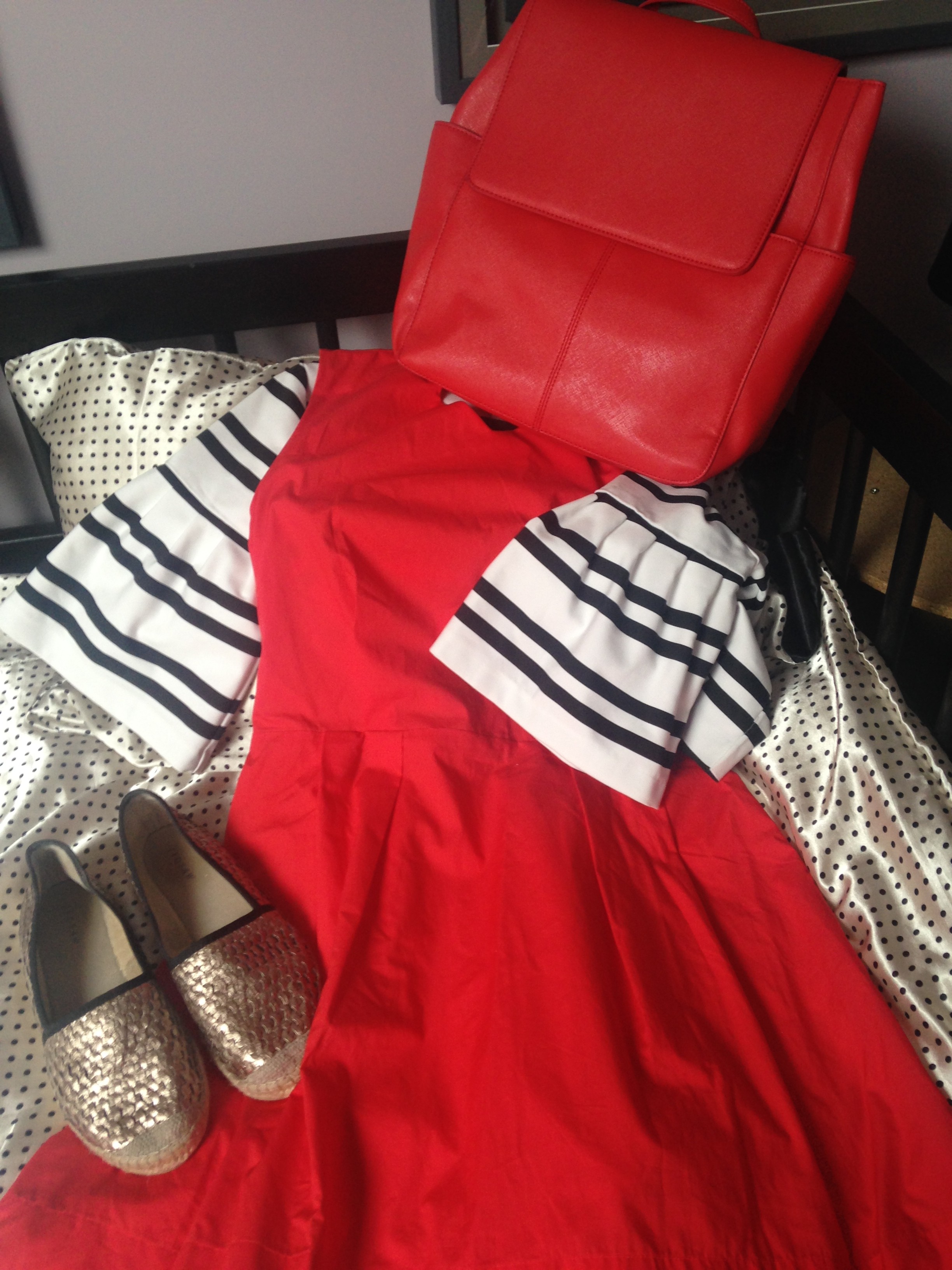 Or you can mix your reds for an all over look, punctuate with a metallic shoe.