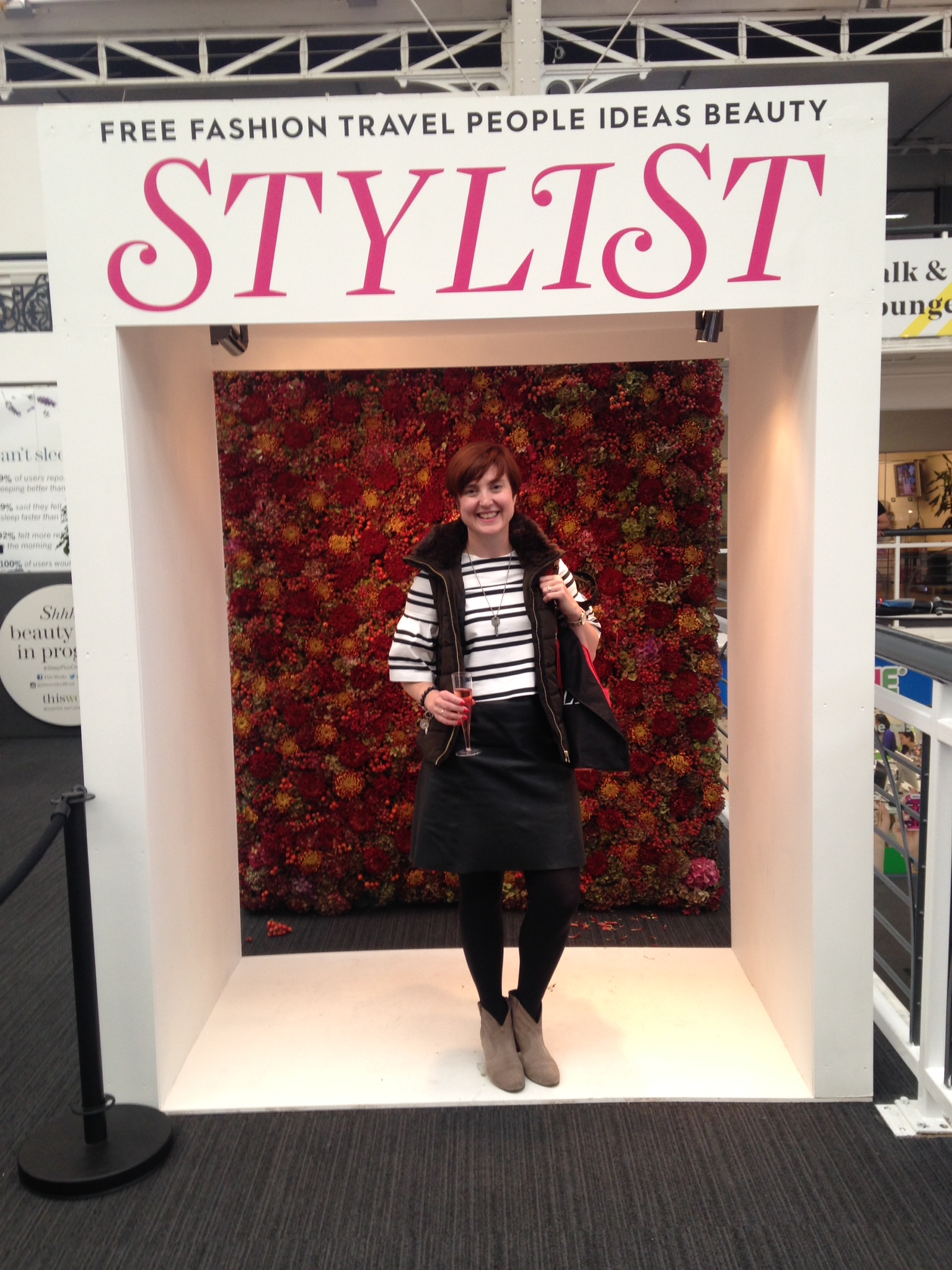 The distinctive Stylist logo outside the venue in big block letters made an arresting image on arrival and bode well for things to come. After collecting my free bag & bubbly (why thank you), I was delighted to find two areas designated for taking photos styled against a background to look as though on the magazine’s front cover. Even better I managed to ask someone to do the honours behind the camera as I was on my own.