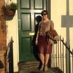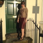 Skirt, Roman Originals £50; Tie Top, Jigsaw £98; Block Heel Shoes, New Look £22.99; Leopard Print Clutch, New Look £17.99; Earrings, Soru from Fabulous £160; Jacket M&S as before